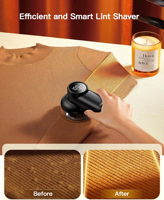 Rechargeable Fabric Shaver - Digital Display, 6-Leaf Blades, 3-Speed Defuzzer for Clothes, Furniture & More!