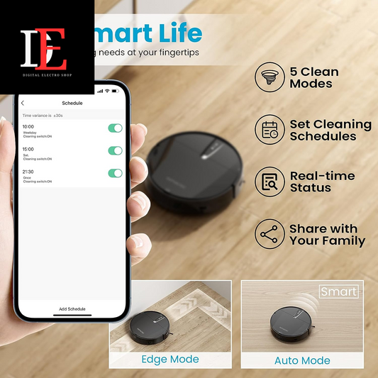 Robotic Vacuum Cleaner with 3000 pa Cyclone Suction, Ideal for Pet Hair, Hard Floor, Low Carpet - Automatic Self Charging